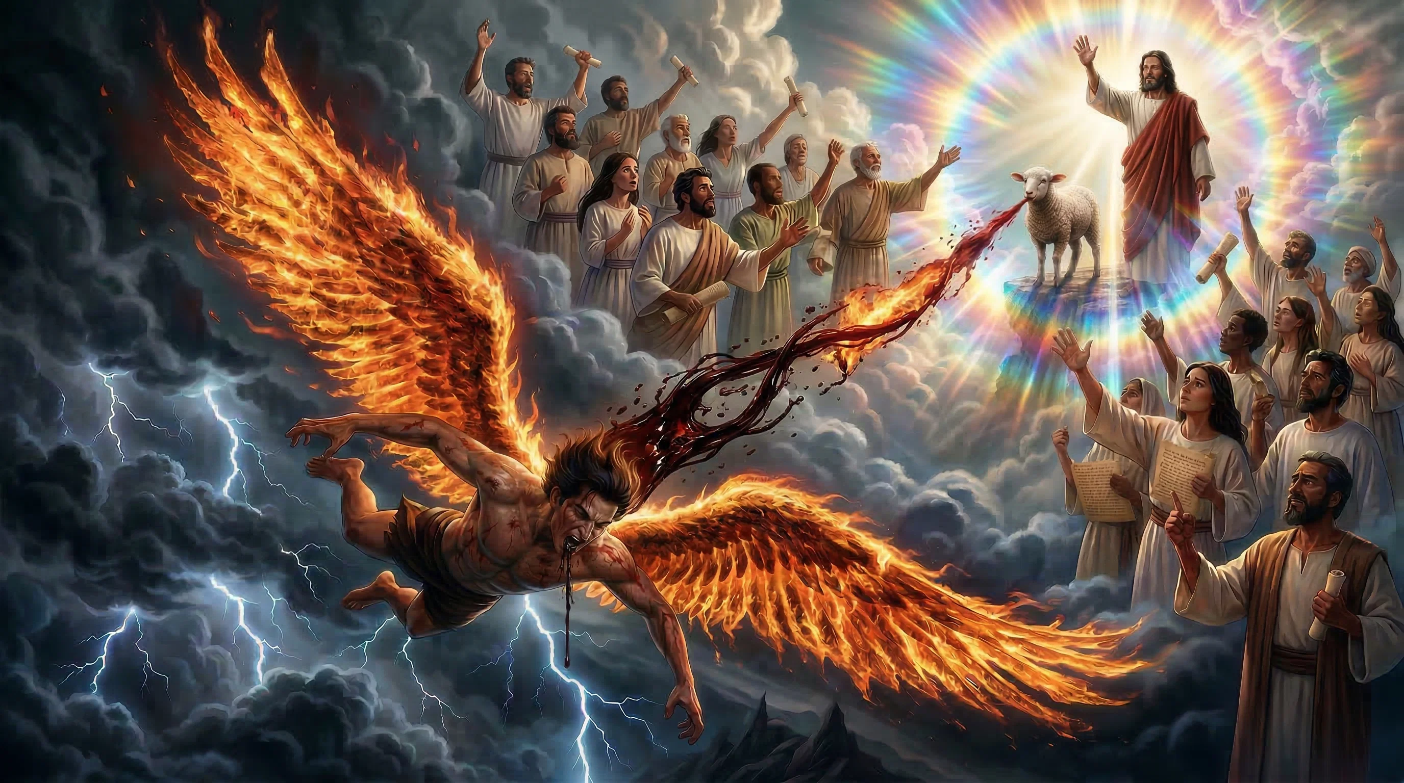 show colourful light and glory around Christ and the lamb. keep everything else the same.